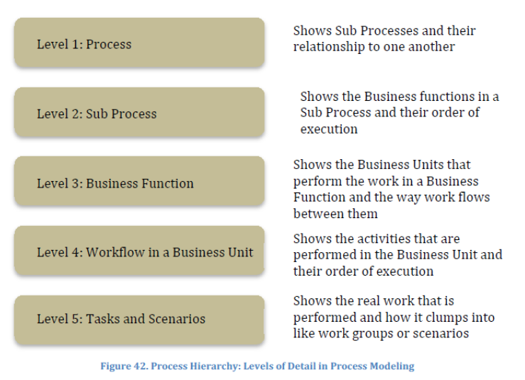 在流程模型的这种分解中,流程分为子流程,然后再分解为功能(function)。