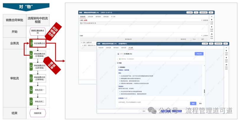 比如,在上图所示的《销售合同审批流程》中,针对第二个步骤<审核销售合同(价格审核)> 构建一个《销售合同价格评审AI模型》,并且将此 AI 模型直接嵌入到第一个步骤 <拟定销售合同> 中。当流程执行人员上传线下用 WORD 编写的销售合同并提交完成时,会自动触发 AI 模型的运行。如果 AI 模型分析后认为此合同有问题,则直接不允许客户经理提交完成。而这个 AI 智能体模型中的就需要调用规则引擎执行各类合同评审规则。