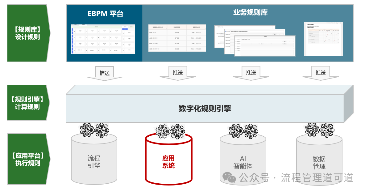 应用平台:通过规则引擎驱动各类应用平台执行规则。