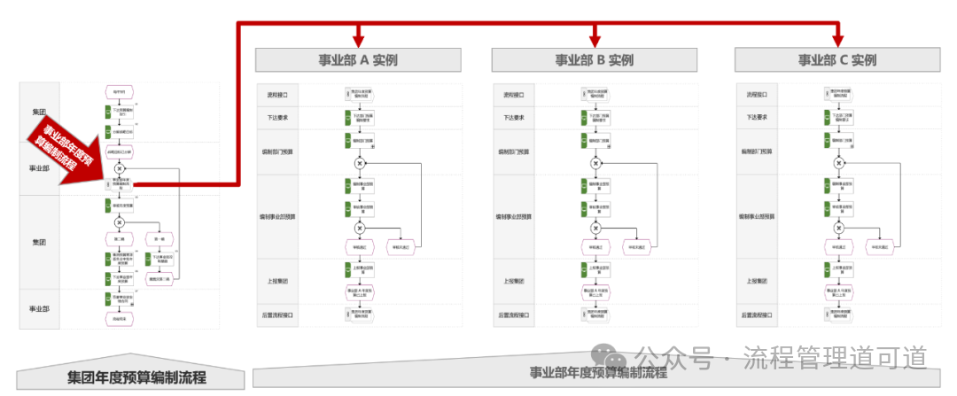 那么,【L4 子流程: 事业部年度预算编制流程】与【L4 子流程: 集团年度预算编制流程】是什么关系呢?