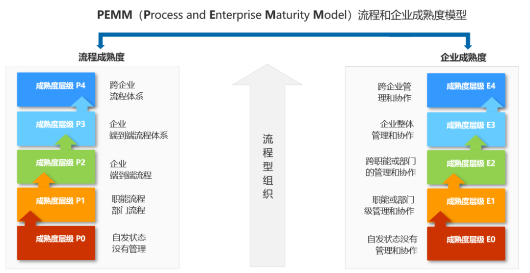 在2007年4月出版的《哈佛商业评论》中,“流程再造”之父迈克尔-哈默教授发表了《流程审计(The Process Audit)》一文,文中首次完整提出了上图所示的 PEMM 即流程和企业成熟度模型。15年来,众多企业基于此模型对自身的流程体系进行了评估,充分证明了此模型的科学性,并有效推动了企业向流程型组织的转型。
