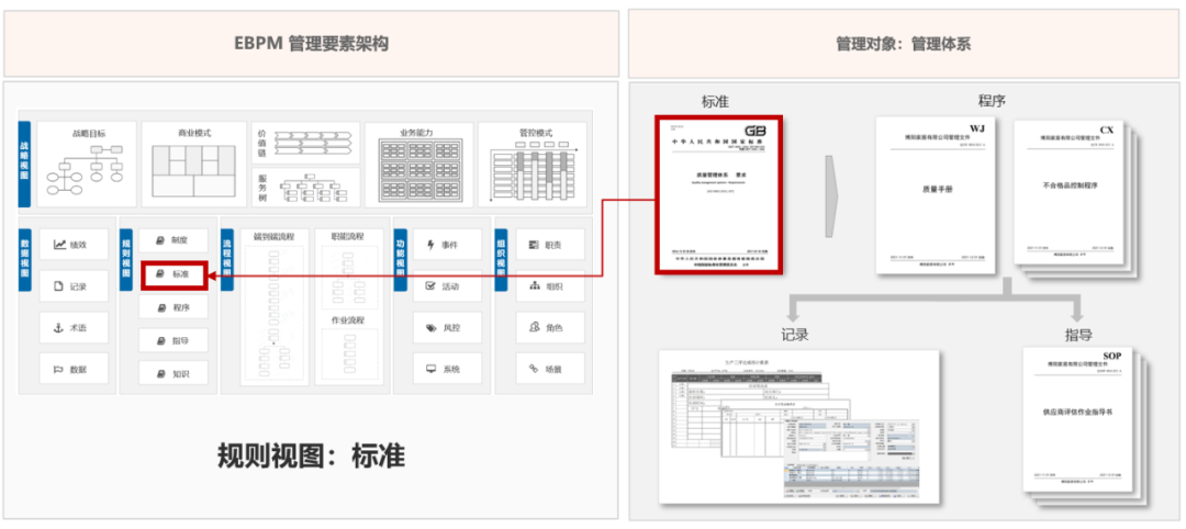 如上图所示,“管理标准” 属于 EBPM 26 类管理要素规则类文件中的 “标准” 类要素。