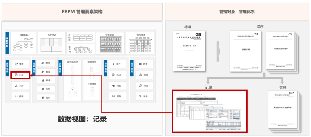 作业指导:完成具体业务活动的详细说明和操作指南。在ISO 9000中认为 “活动” 是最小的工作事项,这一点 EBPM 方法论完全认同。