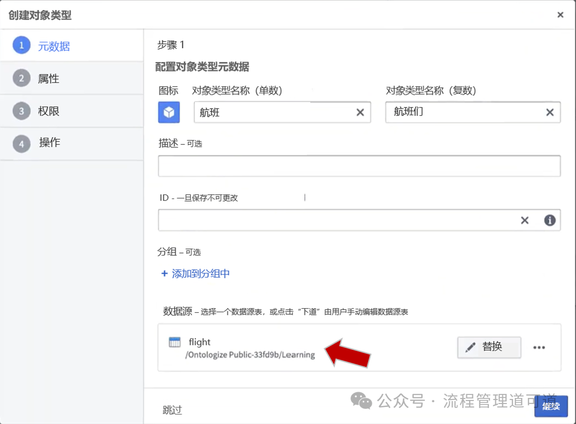 上图红色箭头所示是就是在Palantir Foundry将一个「对象类型」绑定「源数据表」的地方。