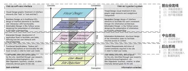 如果用我们经常听到的产品设计五层模型来对应的话,加入中台后的企业IT架构就如下图所示: