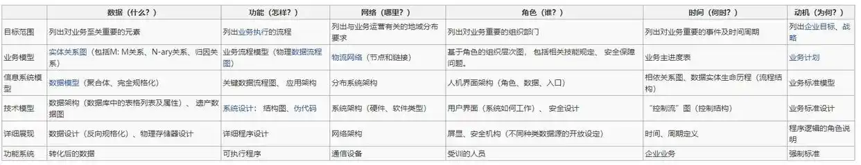 当然完整的企业架构构造不会这么简单,按照John Zachman的理论,企业架构具体分为这6类角色:
