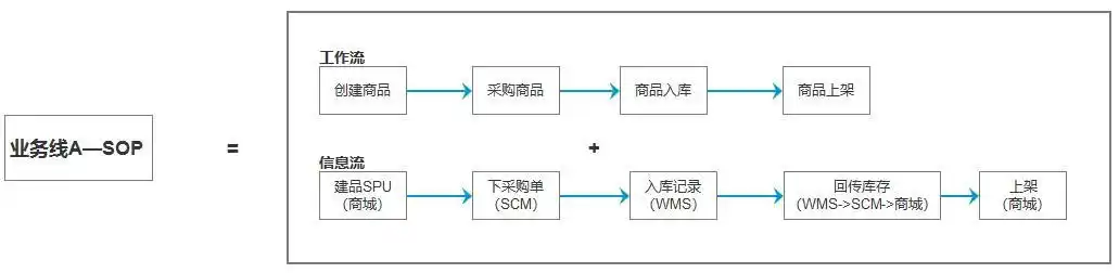 例如在上一篇文章《中台实战(6):业务边界的划定》里,我们其实谈的就是企业架构里业务架构的梳理,我们结合前面学习过的商业模式识别与已经标准化的企业流程,对我们各业务线的SOP进行评估以及最终产出了一个业务标准建模: